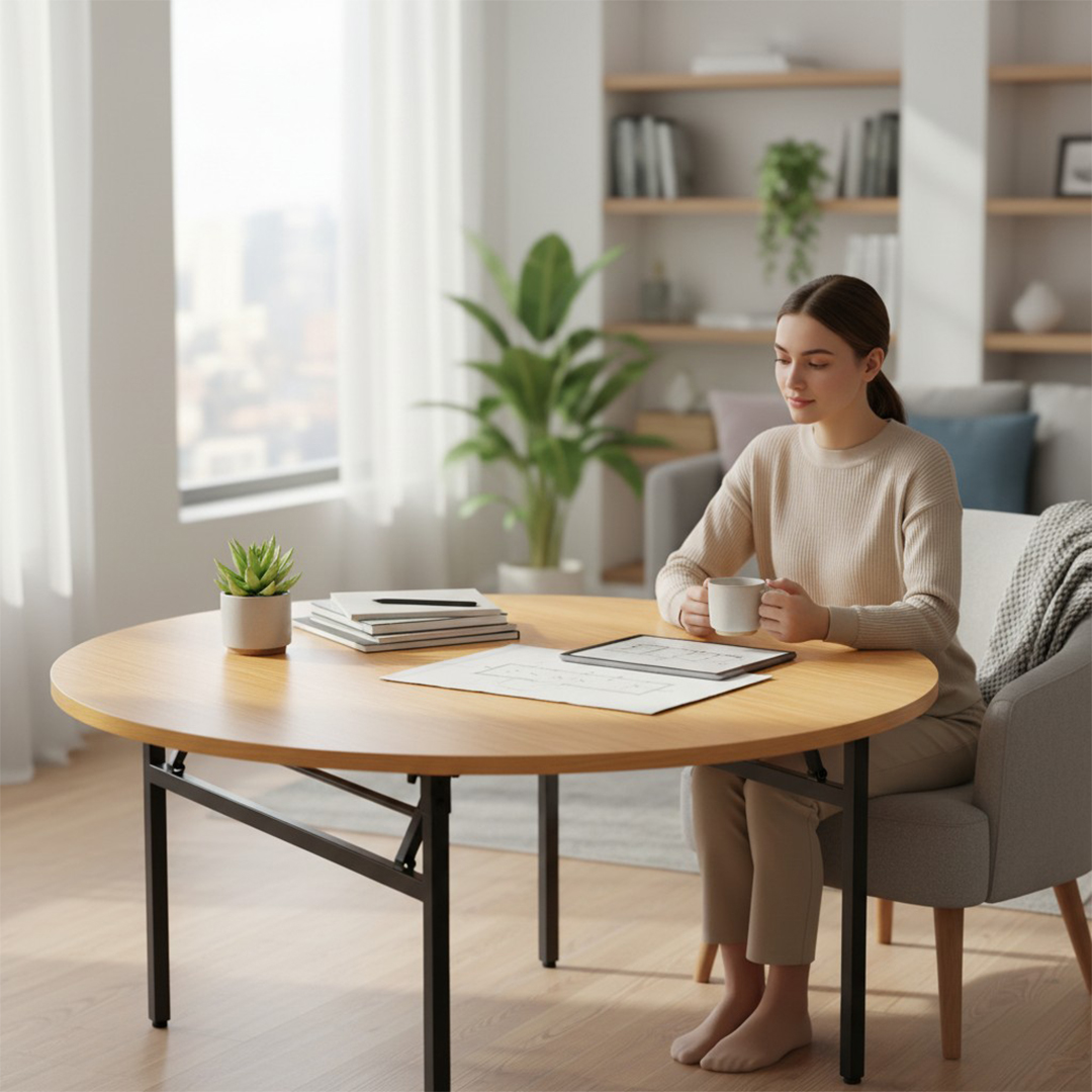 Spacious 1.5m Round Tabletop – The large round surface provides ample space for up to eight people, making it ideal for dining, meetings, and group gatherings.