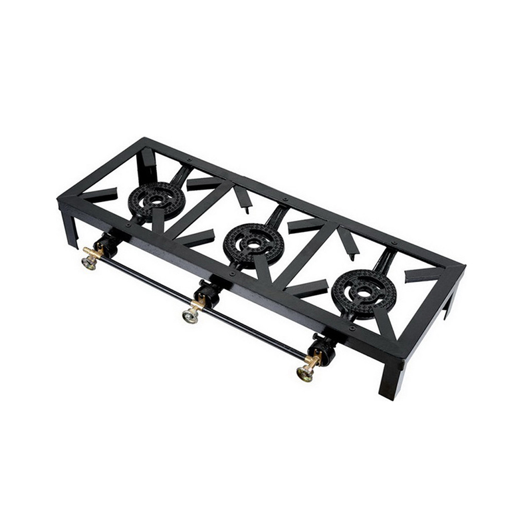 This 3-Burner Boiling Table with a sleek black frame is built for durability, power, and convenience. Ideal for outdoor cooking, catering setups, events, and commercial kitchens, it features three heavy-duty cast iron burners capable of handling large pots and high heat demands. Each burner includes its own adjustable control valve, allowing precise temperature control across different dishes. The sturdy black steel frame ensures long-lasting performance in any environment.