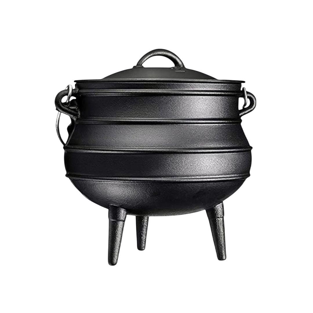 The pot includes a lid and a handle for carrying to and from your fire or oven. Cast iron heats up extremely quickly and therefore high temperatures are not needed to cook your food.