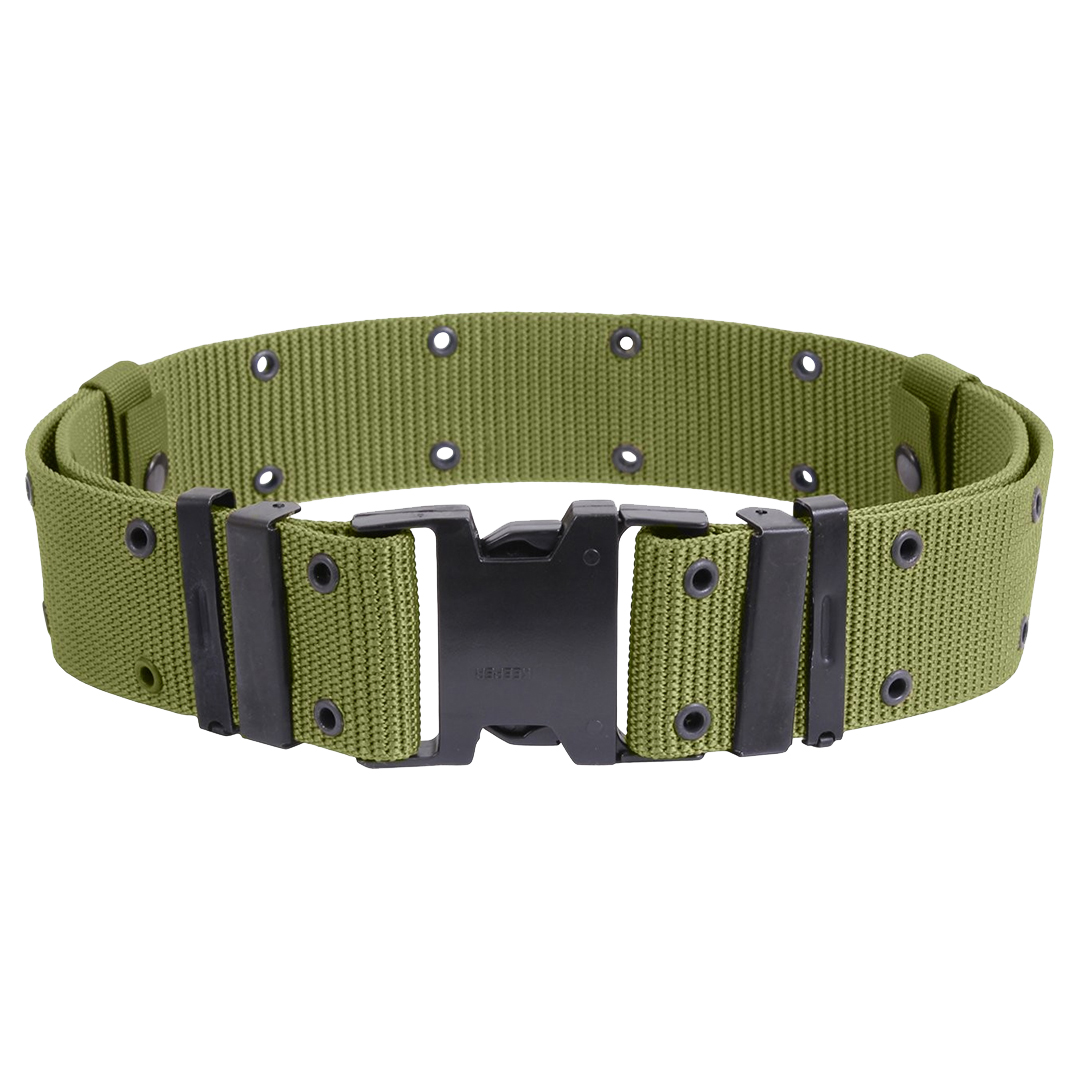 Heavy-duty nylon material. New issue. Adjustable belts. Features a plastic side release buckle and medal waist adjusters. It is grommeted with eyelets to hold certain types of gear. Fits BDU pants and many others. Marine corps style. OD green new issue type pistol belt. Width: 2.25″ (inches). Medium up to 40 inches large up to 46 inches and XL up to 52 inches.